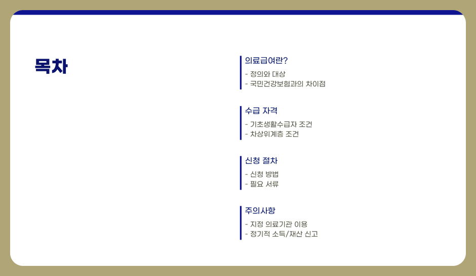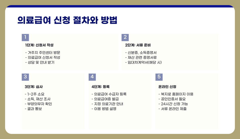 - 4단계: 신청이 승인되면 '의료급여 수급자'로 등록되며, 의료급여증을 발급받아 병원 이용 시 혜택을 받을 수 있습니다.