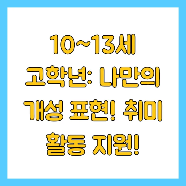 10~13세 고학년: 나만의 개성 표현! 취미 활동 지원!