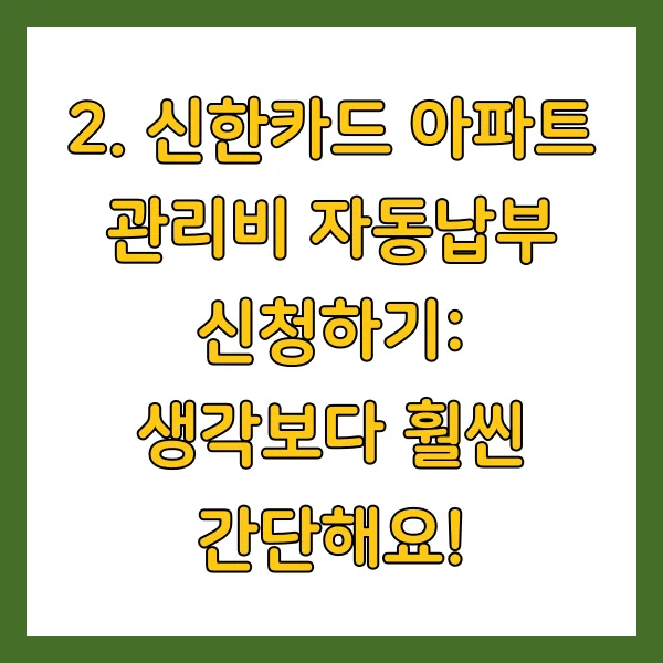 2. 신한카드 아파트 관리비 자동납부 신청하기: 생각보다 훨씬 간단해요!