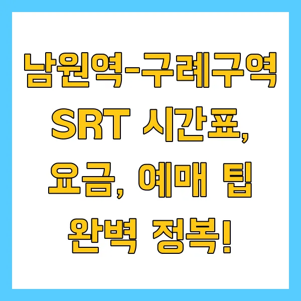 남원역-구례구역 SRT 시간표, 요금, 예매 팁 완벽 정복!